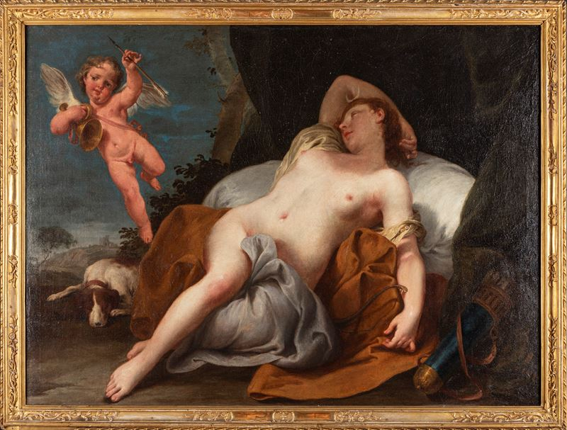 Gli anni in cui il pittore veneziano Giambattista Pittoni (1687-1767) diede vita al ciclo a carattere mitologico costituito da “Venere con due amorini”, “Diana addormentata con amorino e cane” e “Apollo con due amorini”, sono gli stessi in cui il suo concittadino Casanova si recò per la prima volta a Napoli: siamo nella prima metà del Settecento e il languore dei protagonisti dei dipinti di Pittoni è pienamente consonante con il gusto rococò dell’epoca, con le atmosfere che avvolgono nel mito la figura del celebre avventuriero, diventato antonomasia del seduttore.