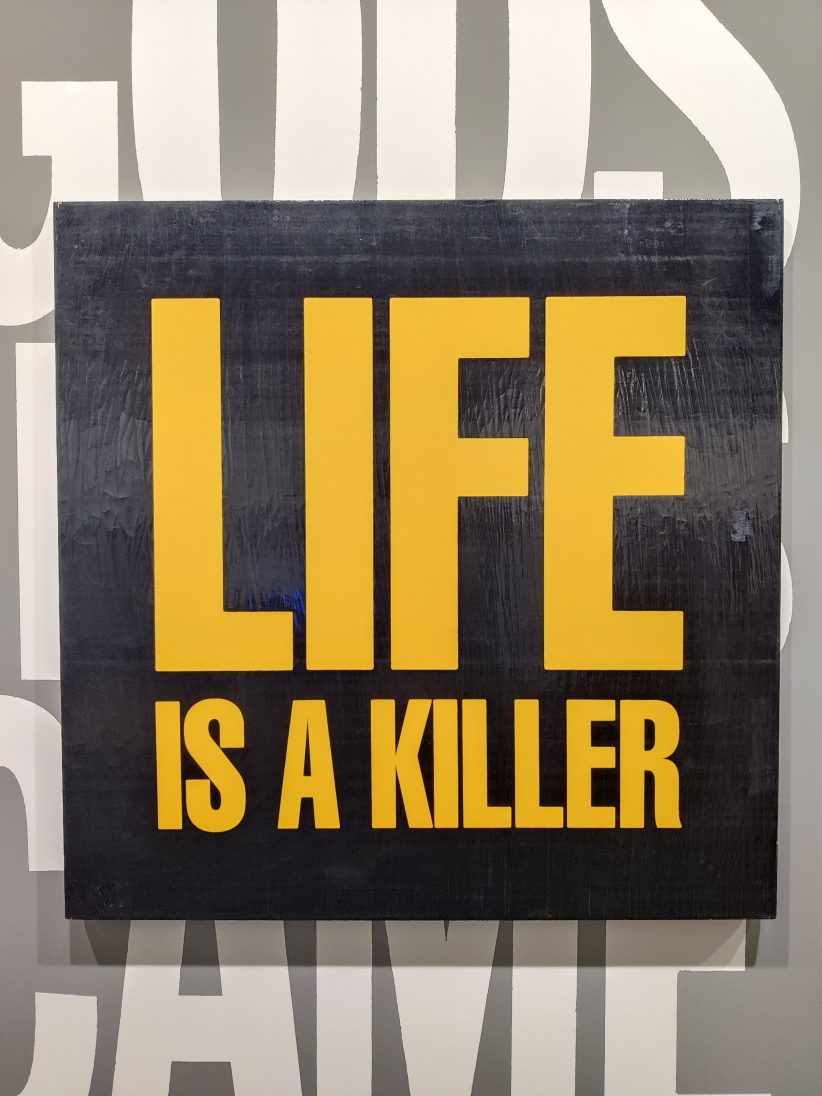 Thomas Brambilla presenta un solo show di John Giorno, con sei rarissimi Vinyl Paintings»del 1989. Ogni opera unisce frammenti poetici e pittura vinilica su tela, trasformando la parola in immagine. Tra i pezzi forti, con scritte rare e poco viste sin ora: When the going gets rough the tough get gorgeous e I don’t need it I don’t want it and you cheated me out of it