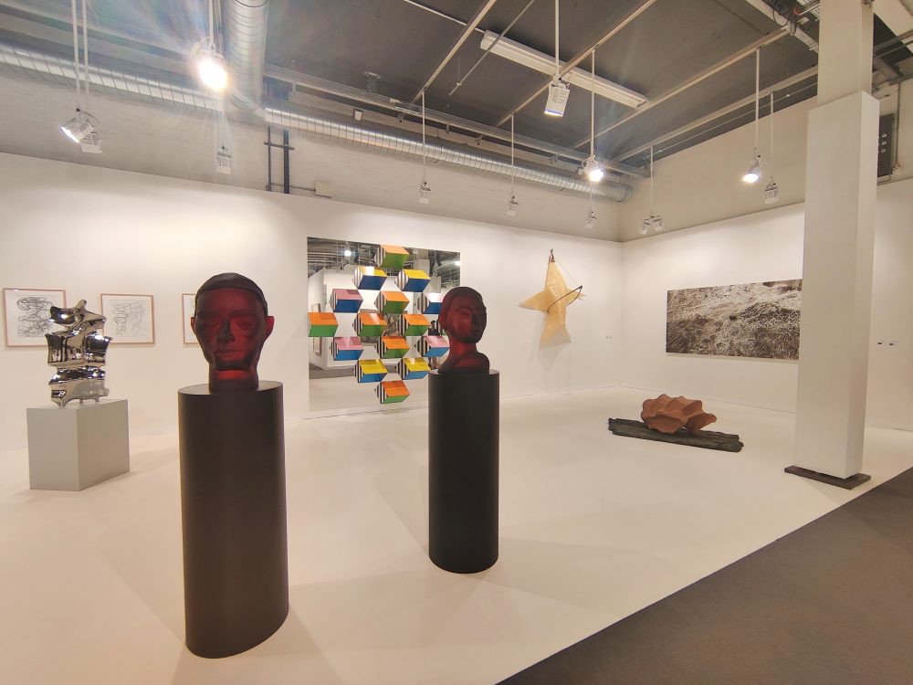 Due volti rossi di Tony Cragg accolgono i visitatori da Tucci Russo, che allestisce lo stand in modo dinamico ma armonico, con opere di Daniel Buren, Giuseppe Penone, Giulio Paolini e non solo