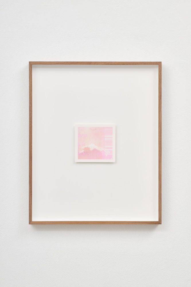 Anche questi gesti rientrano negli espedienti della civiltà del mercato, che rendono il contesto appetibile, confezionandolo come qualsiasi altra merce. È qui che Staccioli rivela con lucidità la potenza demiurgica del capitalismo: un sistema capace di creare e distruggere allo stesso tempo, modellando la realtà secondo logiche di efficienza, desiderabilità e profitto. In Panorama (olio su carta), la rappresentazione stereotipata del paesaggio viene nuovamente messa in crisi. L’artista utilizza un’etichetta trovata su una latta raccolta in un oliveto, un elemento che, a tutti gli effetti, fa parte dello stesso ambiente. L’etichetta che presentava una macchia d’olio è stata poi manipolata attraverso scansioni digitali e una viratura cromatica, evocando così una massa informe che richiama uno scorcio di gusto romantico, giocato su delicate e tenui tonalità di rosa. Tuttavia, la finzione del panorama edulcorato viene negata dalla presenza di un codice a barre e di altre iscrizioni, che ne rivendicano l’origine commerciale e industriale, riportando l’opera a un piano di realtà più crudo e critico.