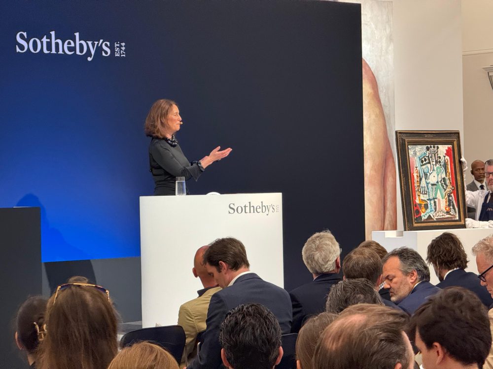 Nu assis dans un fauteuil della decade finale di Picasso, al debutto in un’asta, batte il martello a 5,8 milioni di sterline (7,2 col premio) a fronte di 6 milioni di stima minima. Altro debutto in asta, aggiudicata alla stima minima di 2 milioni (2,5 con premio) per l’opera Two Sunflowers Laying on a Table di David Hockney. La fotografia surrealista di Man Ray Noire et blanche viene battuta a 1,7 milioni di sterline (2,2 con premio), sette volte il valore di vendita realizzato all’asta di Sotheby’s New York nel 2007. L’opera Aux Petites-Dalles di Claude Monet, facente parte di un gruppo di 5 dipinti impressionisti provenienti da una collezione privata americana (e che in totale sono stati venduti per 8,3 milioni), batte il martello a 4,6 milioni (5,6 milioni con premio), sotto la stima minima di 5 milioni.