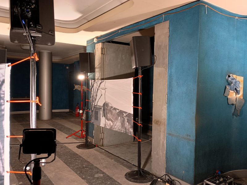 Sabato sera però la cornice era diversa, anzi quasi non c’era e il confine netto che separa molto spesso l’arte dalla vita era quasi assente. Ed era molto bello. Per tutto il tempo che mi sono trattenuto – non poco – ho osservato le altre presone che con me partecipavano all’evento: la maggior parte di coloro che hanno messo piede dentro al foyer del cinema non aveva la minima idea di cosa stesse succedendo, e certamente (origliati alcuni commenti) facevano fatica a collegare l’installazione di Giulio Polloniato al concetto di arte – non era musica, né pittura, né niente di riconducibile a quello che comunemente si pensa quando si pensa all’arte. Però entravano perché incuriositi dai suoni, dalle luci, dal capannello di gente che sostava all’esterno e dal cinema nuovamente aperto dopo così tanto tempo. Alcuni, più giovani, non lo avevano mai visto, altri, i vecchiotti come me, hanno avuto il loro bel momento Amarcord.