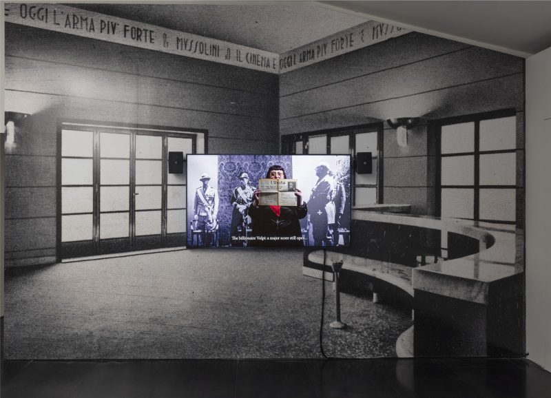 Alessandra Ferrini, classe 1984, non è nuova a collaborazioni con la Fondazione Sandretto, con la quale ha in passato attivato diversi contributi in varie occasioni (tra questi: Biennale di Democrazia, Polo del 900, Istoreto). Il lavoro presentato per questo progetto espositivo si sviluppa su due sale. La prima funge da introduzione storica e informativa sulle dinamiche storiche e politiche che portarono all’occupazione della Libia, mentre la seconda presenta un’installazione video a tre canali di forme e dimensioni tra loro diverse. L’opera è stata commissionata e prodotta dalla stessa Fondazione Sandretto Re Rebaudengo.
