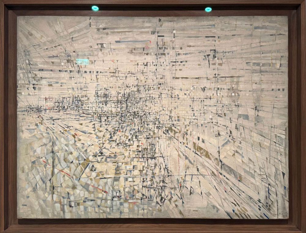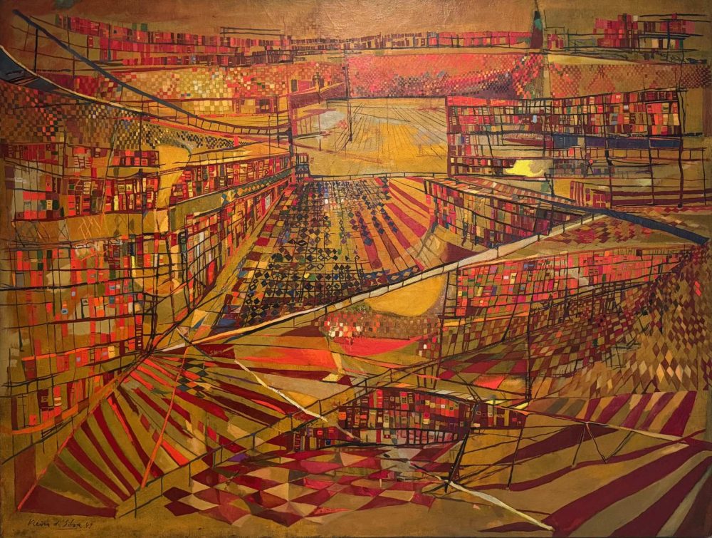 Con la differenza che Vieira da Silva non è così perentoria ma accoglie nei suoi appunti di strutturazione una varietà sensibile di instabilità. E rispetto alla prismatica cubista, che tende alla destrutturazione del pieno, l’uso oculato di motivi come le piastrellature e gli scaffali di biblioteche dischiude a fisarmonica spazi aperti, a tratti smaterializzati. Il riecheggiare di soluzioni personali non cade nella ripetizione e nel meccanico, anche grazie ad una certa lentezza esecutiva che stratifica e cancella. A tratti costeggia il graffitto e la gestualità esistenziale dell’Informale digerendoli nella propria grammatica. La peculiarità dei suoi stilemi adombra quasi una consapevolezza filosofica che innalza il suo lavoro dal decorativismo.
