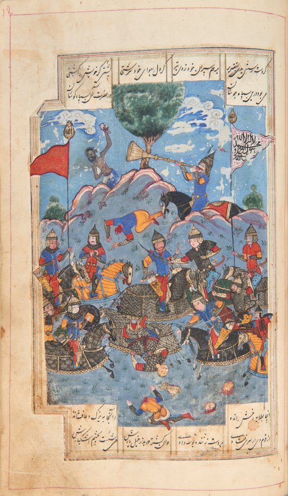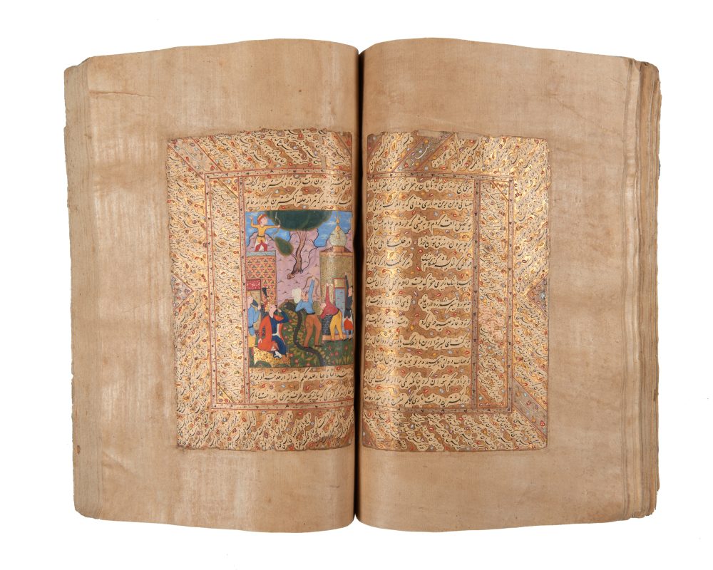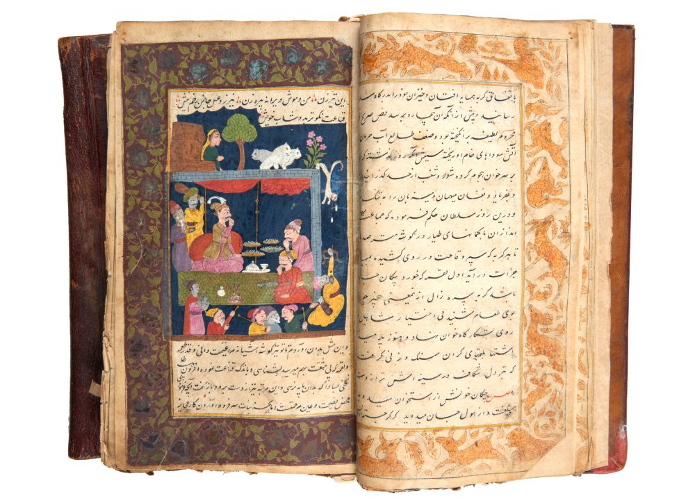 Un nucleo centrale dell’asta è dedicato alla letteratura persiana e indo-moghul. Massima attenzione per un’antologia delle Kulliyat di Sa‘di di Shiraz, scritta tra il 1575 e il 1590. Il manoscritto è decorato con miniature e testi poetici in nastaʿlīq multicolore. Stima 8-12 mila euro. Segue la Khamsah di Nizami Ganjavi, manoscritta a Bukhara tra il 1657 e il 1662 dal calligrafo Muhammad Razi. Contiene oltre 50 miniature a piena pagina e stima 10-15 mila euro.