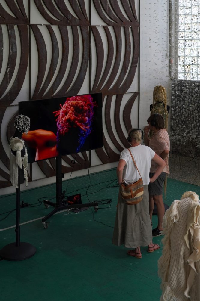 Un aspetto cruciale ma forse meno visibile di ‘The Mainframe’ è stato l’utilizzo della tecnologia analogica per la trasmissione dell’installazione video. Le immagini, invece di essere proiettate attraverso schermi digitali di ultima generazione, sono state veicolate tramite vecchie televisioni a tubo catodico, recuperate e riconvertite appositamente per il progetto. Questo dettaglio non è solo una scelta estetica o nostalgica, ma parte integrante del discorso espositivo: un atto di upcycling tecnologico che restituisce nuova vita a oggetti desueti, inserendoli in un contesto artistico contemporaneo. Le TV, oltre a funzionare come dispositivi di visione, diventano così portali temporali e concettuali: finestre su una dimensione alternativa, un tempo “prima del cambiamento”, in cui l’interazione con l’intelligenza artificiale avviene fuori dalle cornici lisce e iper-definite dell’oggi. Non meno importante, la trasmissione avveniva attraverso un segnale analogico reale: chiunque si fosse trovato nei paraggi, dotato di un’antenna ricevente come quelle in uso negli anni ’70 e ’80, avrebbe potuto sintonizzarsi e captare il contenuto della mostra direttamente sul proprio apparecchio. Questo gesto di apertura e condivisione tecnologica ha rotto la logica del contenuto racchiuso in uno spazio fisico o protetto da login e piattaforme, e rimesso in circolo l’idea utopica di una comunicazione libera, accessibile e orizzontale. In questo modo, ‘The Mainframe’ non solo ha riutilizzato oggetti del passato, ma ha riattivato immaginari, pratiche e possibilità dimenticate, fondendo poetica, sostenibilità e riflessione critica sul rapporto tra tecnologia, memoria e futuro.