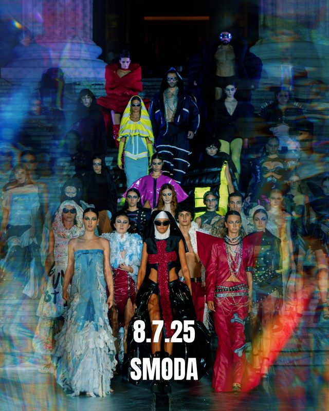 Per valorizzare il patrimonio culturale urbano attraverso le declinazioni della bellezza attraverso la moda e i linguaggi dell’arte e della tecnologia. Quest’anno SMODA si è appropriata delle scalinate monumentali del Teatro Massimo, simbolo potente della città, trasformandolo in una passerella urbana e in un palcoscenico di lotta creativa. Abbiamo organizzato una sfilata immersiva e coinvolgente, animata da performance, arte digitale, musica e un video mapping capace di trasformare il teatro in un corpo vivo e pulsante, veicolo di una narrazione visiva contro la guerra, contro i potenti – anche quelli dell’industria della moda – per un nuovo immaginario di pace, inclusione e resistenza artistica. Protagonisti dell’edizione 2025 sono stati gli studenti del corso di Progettazione della Moda dell’Accademia di Belle Arti di Palermo. Abbiamo presentato una collezione collettiva che riflette un lavoro importante: quello di prendere le distanze da certi cliché legati alla loro provenienza geografica e avvicinarsi a linguaggi sperimentali più ampi, internazionali, radicali. Anche quando è presente un riferimento alla Sicilia, esso viene filtrato, decostruito e rielaborato con consapevolezza critica, per evitare ogni forma di folklore e dare spazio a una visione nuova, aperta, cosmopolita. I capi in passerella sono il frutto di una ricerca sul corpo, sui materiali alternativi e sul gesto progettuale come espressione artistica e sociale. Niente abiti da sera nel senso convenzionale, bensì costruzioni estetiche ibride e coraggiose. Insceniamo un racconto politico, come critica sociale e sogno collettivo. Dobbiamo abituarci al futuro, alle contaminazioni, al superamento dei confini – non solo geografici ma mentali. Se non riusciamo ad accogliere ciò che ci è “altro”, rischiamo di restare prigionieri di visioni sterili e autoreferenziali. SMODA 2025 va oltre la sfilata: è un dispositivo performativo, un laboratorio a cielo aperto in cui la moda diventa linguaggio e attivismo, estetica e presa di coscienza. Un atto poetico e politico, che porta in scena il desiderio di cambiare lo sguardo, anche attraverso l’abito.