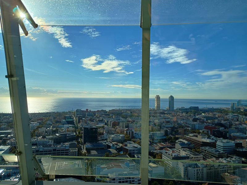 In ogni città c’è il Belvedere, un punto elevato da cui osservare, come se si stesse volando, i tetti delle case, le cupole delle chiese e i campanili, il luogo dove eravamo ieri, la distesa urbana che si fonde con il paesaggio, con il cielo, con l’orizzonte. Nelle città antiche è spesso una terrazza in cima a un colle o magari tra i merli di una torre, in quelle moderne è sempre la sommità di un grattacielo. Nel nostro ultimo viaggio abbiamo fatto la nostra brava, turistica esperienza di un Belvedere, anzi, di un Mirador, visto che eravamo a Barcellona. Il Mirador è sul cocuzzolo di un grattacielo abbastanza alto per permettere uno sguardo a volo d’uccello; il grattacielo tra l’altro, è molto contemporaneo e con una forma così caratteristica (noi lo chiamavamo il suppostone, per dire) da spiccare nel paesaggio urbano come un “landmark” e finire sulle cartoline.