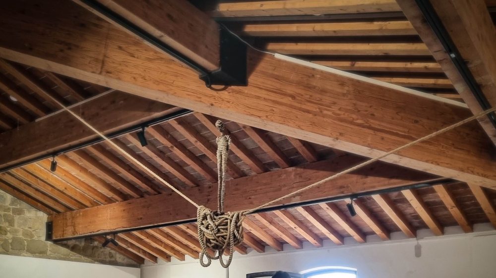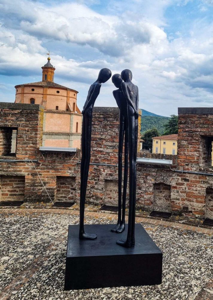 “La vita, con le sue precarietà, con i suoi equilibri, con i suoi grovigli, deve essere accettata, appunto, con ironia. O, meglio, con autoironia che è l’unico modo per trovare momenti ‘fermi’ e ‘sicuri’”. È questa, secondo Giorgio Bonomi, la “lezione” offerta dalle opere dell’artista Alex Pinna, da cogliere in Umbria, in occasione della sua mostra personale allestita fino al 14 settembre presso la Rocca, Centro per l’Arte Contemporanea di Umbertide. Baci da Umbertide – questo il titolo dell’esposizione, curata dallo stesso Bonomi e da Lara Caccia – presenta una trentina di lavori che testimoniano il percorso di ricerca più recente dell’artista ligure, ma milanese d’adozione.