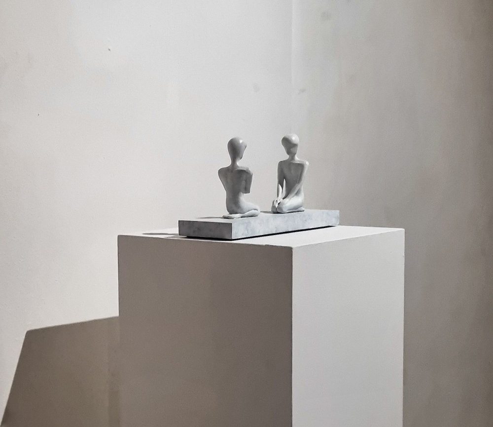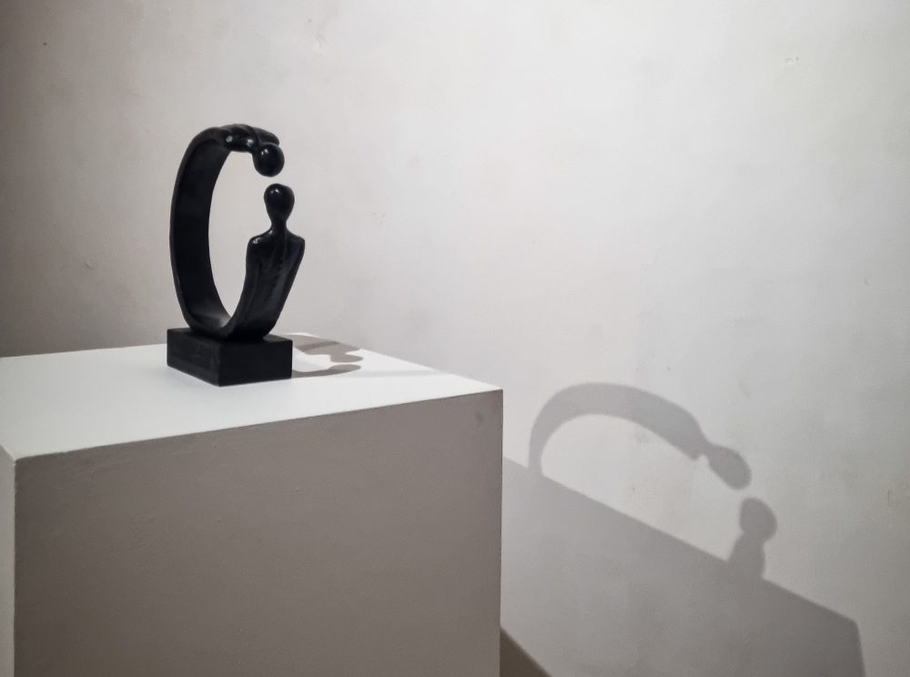 “Una metafora della non-identificazione del rappresentato”, scrive ancora il curatore, “essendo appunto ‘indefinito’ e quindi ‘universale’, capace di assumere i connotati di tutti, di ‘uno, nessuno e centomila’. Anzi a volte la definizione, come molte situazioni rappresentate, assume valenze ironiche”. Un testo inserito nell’originale busta/catalogo, contenente anche sette cartoline realizzate dall’artista. Nato ad Imperia, Alex Pinna vive e lavora a Milano, dove è direttore e docente della scuola di scultura dell’Accademia di belle arti di Brera. Ha fin da subito orientato la sua produzione sulla scultura ricorrendo a materiali eterogenei quali la corda, il vetro, il bronzo e la ceramica. Qui una galleria di immagini della mostra…