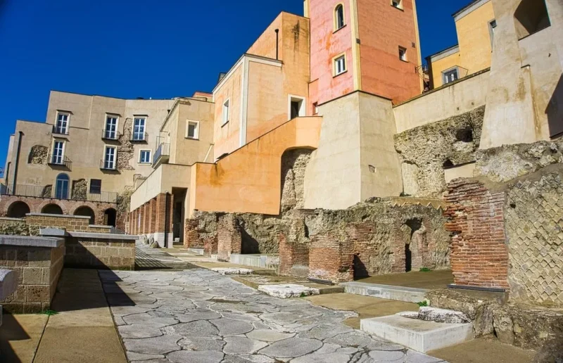 Rione Terra (percorso archeologico, spazi al piano strada, Duomo di San Procolo Martire e Podio del Duomo di San Procolo Martire, Chiesa di San Liborio, locali storici restaurati), Chiesa di San Raffaele Arcangelo, Chiesa del Purgatorio (area esterna), Cinema Sofia, Anfiteatro Flavio, Parco pubblico di Villa Avellino, Parco Archeologico di Cuma.
