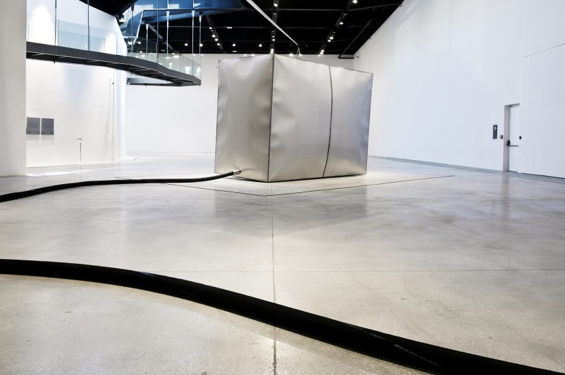 «Fare una mostra e cercare di attirare l’attenzione è già una sfida» dice Orsini riferendosi all’interno carico della villa, ma anche a quel meraviglioso esempio di parterre all’italiana che si vede dalle finestre. Sottoscriviamo, perlomeno per quanto riguarda l’esterno, comprensivo anche una vista sul Golfo dei poeti che “che ve lo diciamo a fare”. Sull’interno siamo meno indulgenti, forse perché anni e anni di contesti d’antan bonariamente “profanati” dall’arte contemporanea hanno smesso d’impressionarci, e/o sembrarci una sfida in termini di display visivo. Vero è, e va detto, che l’opera di Sassolino è piuttosto radicale nel suo destreggiarsi tra oggettuale e concettuale. Oggettuale e concettuale che l’artista mette insieme con un senso poverista per la materia, un senso processuale per la scultura e un un senso tutto suo che procediamo a illustrare.