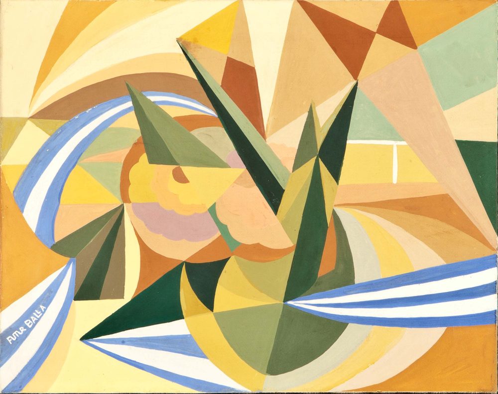 Tra le figure più affascinanti del Futurismo, documentate in mostra, vi sono due protagoniste femminili. Artiste che seppero ritagliarsi uno spazio originale e coraggioso in un movimento storicamente dominato dall’universo maschile. Spicca Barbara, pseudonimo di Olga Biglieri, ribattezzata da Marinetti nel senso di “barbarica”. Figura eclettica e anticonvenzionale, Barbara fu una delle prime donne in Italia a ottenere il brevetto da pilota, a soli 16 anni, e fece dell’esperienza del volo una fonte di ispirazione artistica. Nei suoi dipinti, l’occhio osserva il mondo dall’alto, trasformando l’orizzonte in una visione dinamica, quasi astratta, fatta di linee in movimento e prospettive vertiginose.
