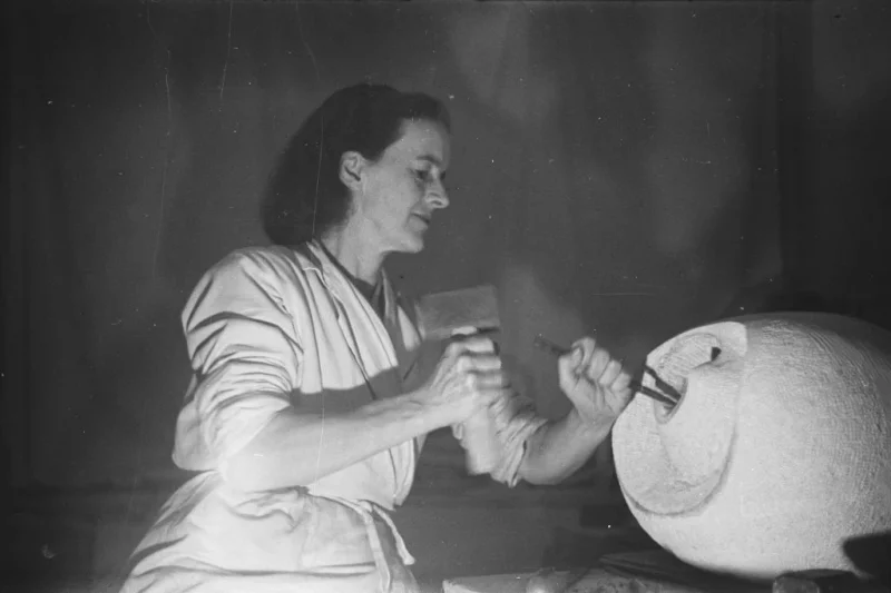 Sculpture with Colour (Oval Form) Pale Blue and Red appartiene a un momento delicato nella vita dell’artista. Nel 1939, con la guerra alle porte, Hepworth lasciò Londra per rifugiarsi a St. Ives, in Cornovaglia, con i suoi tre figli gemelli di quattro anni. Solo nel 1943 poté tornare a lavorare con continuità, ottenendo un permesso speciale per usare il legno nonostante il razionamento bellico. Questa scultura fu tra le prime opere nate in quel periodo, un lavoro sperimentale che univa forme ovali e fili tesi nello spazio, aprendo la strada a una nuova stagione della sua produzione. Eleanor Clayton, curatrice dell’Hepworth Wakefield, ha ricordato come l’artista fosse costretta a lavorare in brevi intervalli, alternando la scultura con la cura dei figli e le faccende domestiche: “È sorprendente che un’opera di tale forza e modernità sia stata realizzata in quelle circostanze, con la guerra sullo sfondo”.