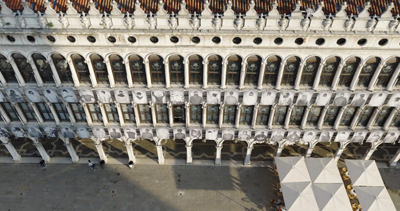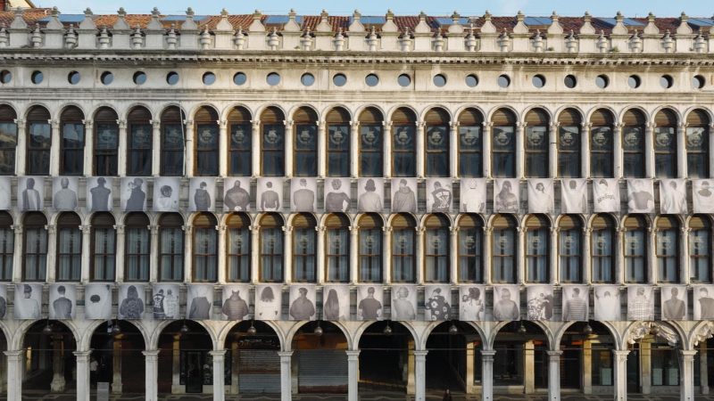 Fino a domenica, Piazza San Marco ha una faccia nuova. Una faccia che non ha occhi, bocche, sorrisi. Una faccia fatta di cento schiene. La monumentale installazione Dreams in Transit, curata da Art for Action Foundation e ospitata da The Human Safety Net, è esplosa sulla facciata delle Procuratie.
