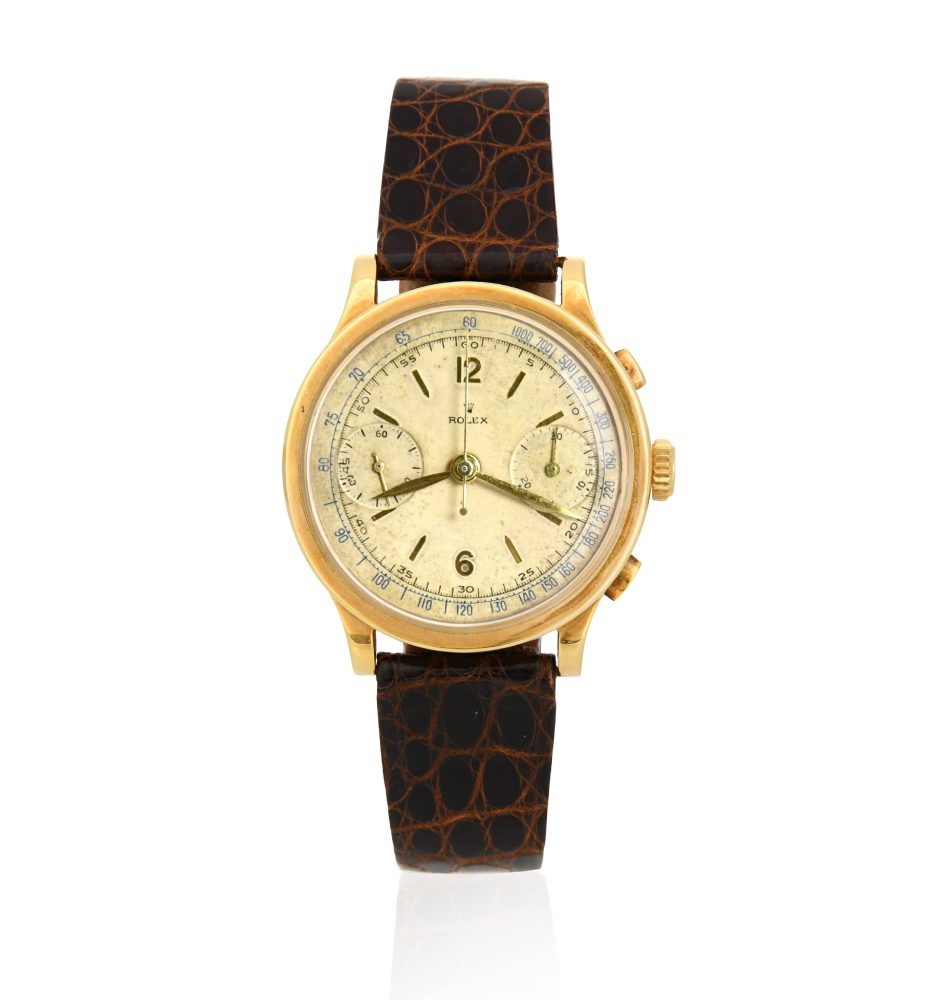 Tra i lotti di maggior rilievo spiccano due Rolex da collezione che raccontano due epoche e due storie di stile molto diverse. Il primo è un Cronografo ref. 2508 degli anni ’30 , esempio raro e sofisticato in oro giallo 18 kt con lunetta a moneta e pulsanti ad oliva. Equipaggiato con un movimento meccanico manuale Valjoux cal. 23, è accompagnato da un cinturino in pelle con fibbia coeva e astuccio originale Rolex dell’epoca. Un esemplare di grande eleganza, proposto con una base d’asta di 6 mila euro.