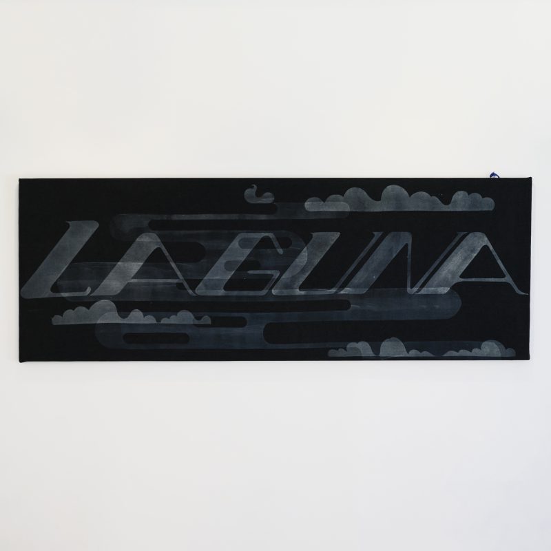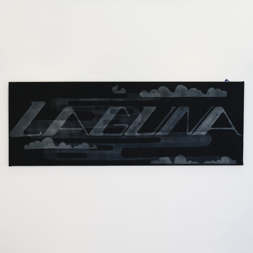Uno dei lavori centrali, Laguna (2025), sembra in apparenza un telo di jeans scolorito. Non colori aggiunti, ma sottratti. Non pittura, ma anti-pittura. Il denim non è lì come moda ma come storia: il “sergé de Nîmes” francese, la Genova dei blu per le vele, l’America dei jeans. Tutto compresso in un rettangolo che diventa insieme mappa e manifesto, tessuto industriale e ricordo artigiano.