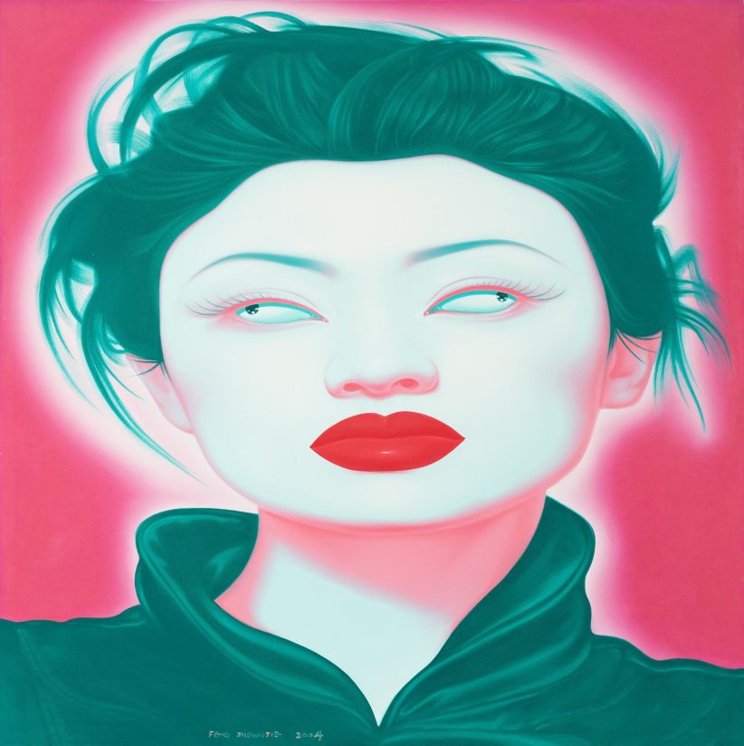 A dominare la scena sono due protagonisti della pittura cinese contemporanea, tra i più riconosciuti a livello internazionale. Feng Zhengjie è presente con due importanti olii su tela, entrambi valutati tra i 9 e i 12 mila euro, che rappresentano il punto più alto in termini di stima economica dell’intera asta. Le sue figure femminili, pop e quasi alienanti, attraggono l’occhio con colori fluo e atmosfere sospese. Accanto a lui, l’opera Afternoon Tea di Shi Xinning(lotto 57), realizzata nel 2004, unisce realismo tecnico e ironia concettuale, inserendo personaggi storici in contesti anacronistici; la sua valutazione è tra 5.5-7.5 mila euro.
