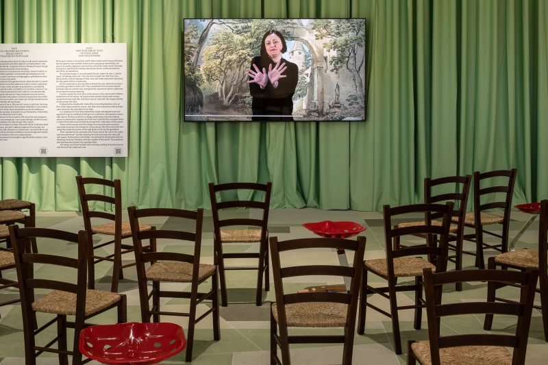 Accessibilità e partecipazione sono due concetti alla base del progetto espositivo di Formafantasma che trasforma il Palazzo delle Arti e Tradizioni Popolari. L’allestimento si sviluppa al piano terra, dove protagonista è il pubblico stesso, e al primo piano, nel Salone d’Onore che ospita “Il racconto dei racconti”, una libera interpretazione fiabesca dove tradizione e immaginazione si fondono.