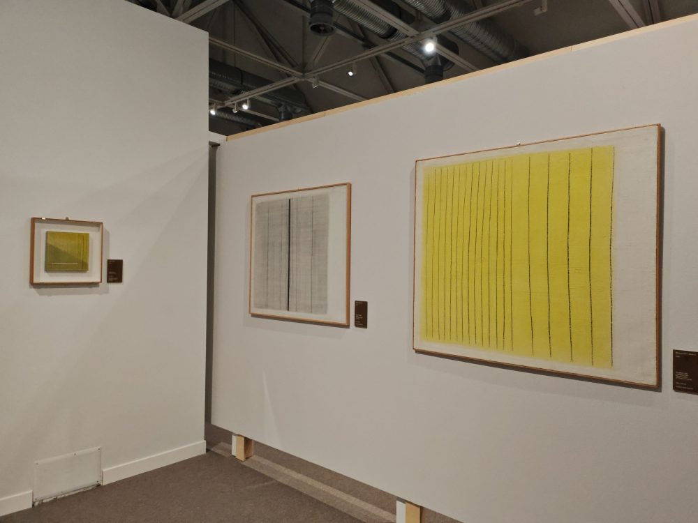 Dalle prime esperienze nell’arte applicata e nel design tessile (anche grazie alla collaborazione con Gio Ponti) fino ai lavori estremamente sintetici degli anni Settanta, la pittura di Lazzari si muove come una partitura. Ogni linea, ogni variazione di colore diventa un atto di libertà, una risposta alla rigidità delle convenzioni estetiche e sociali.