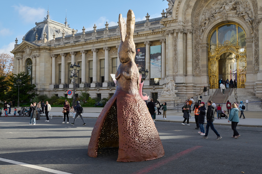 Nel 2025, la Settimana dell’Arte (Paris Art Week) ha trasformato Parigi in un’enorme piattaforma espositiva, crocevia di tutte le forme d’arte immaginabili. Installazioni monumentali si possono ammirare a Place Vendôme, Palais d’Iéna, Cité de l’Architecture, Chapelle des Petits-Augustins, cortile dell’Institut de France, avenue Winston-Churchill… Un dissonanza cognitiva per i critici d’arte è stato l’enorme oggetto gonfiabile a tema “ranocchio” dell’americano-venezuelano “maestro del sovrannaturale” Alex Da Corte a Place Vendôme.