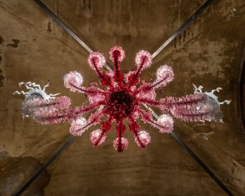 In questo nostro mondo contemporaneo in cui la luce arriva da schermi piatti e da dispositivi che si aggiornano da soli. Eppure basta mettere dodici lampadari nati da mani vere, fuoco vero, fiato vero, sotto una piazza che è sopravvissuta a tutto, per accorgersi che l’illuminazione può ancora essere un atto poetico. A volte basta accendere qualcosa che non si era mai visto prima. A volte basta guardare in su.