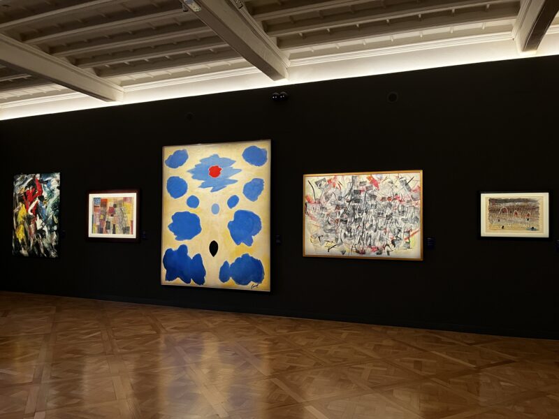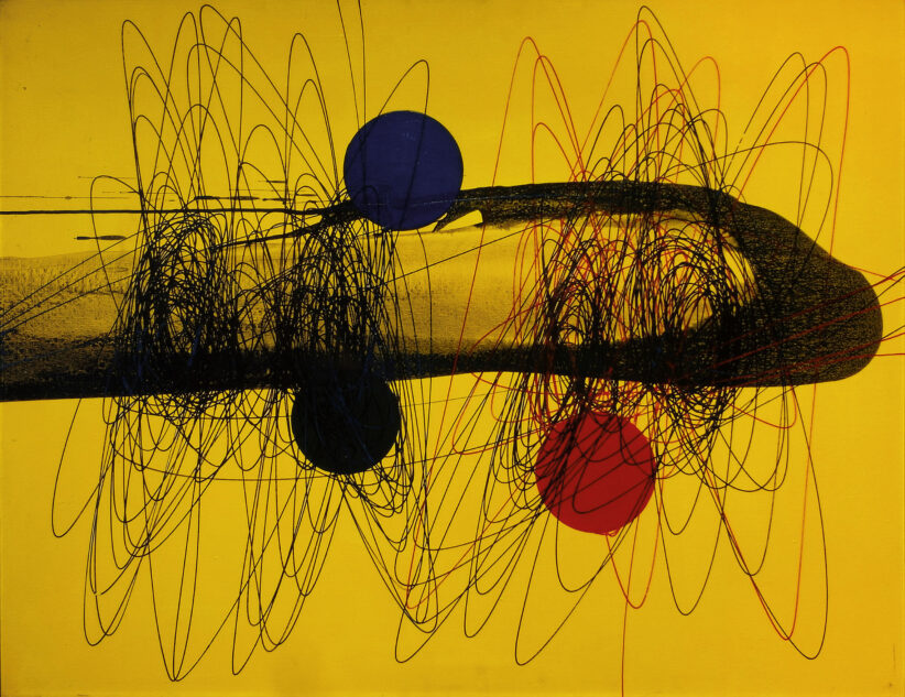 In particolare stupiscono le opere di Roberto Crippa, appassionato di volo, riconoscibile per vorticose e dinamiche pennellate che esplodono in deflagrazioni cromatiche straordinariamente armoniche, che includono primitivismo totemico e codici del surrealismo. È una rivelazione la sezione che indaga il cosiddetto Spazialismo milanese, rappresentato da autori diversi che inglobano surrealismo e tensioni esistenziali come Gianni Dova, Cesare Peverilli, Emilio Scanavino, Ettore Sottsass, Beniamino Joppolo, Aldo Bergolli, Gian Carozzi. Protagonisti della pittura astratta innovativa degli anni Cinquanta, che hanno marcato un’epoca alla ricerca di linguaggi non accademici.