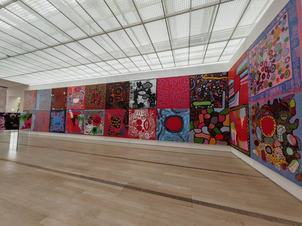 La mostra della Beyeler non si limita a ripercorrere una carriera monumentale: invita piuttosto a entrare in un universo mentale in cui arte e vita coincidono fino a diventare indistinguibili. Un’esperienza immersiva e sensoriale, capace di restituire la radicalità di un pensiero che attraversa oltre settant’anni di pratica senza mai perdere intensità. Dai primi lavori realizzati nel Giappone del dopoguerra alle più recenti installazioni concepite per gli spazi del museo, il percorso rivela una sorprendente coerenza interna. Kusama non procede per svolte stilistiche, ma per ossessioni che si reiterano e si trasformano: reti, punti, accumuli e superfici specchianti diventano strumenti per esplorare l’infinito non come astrazione, bensì come esperienza psicologica e corporea.