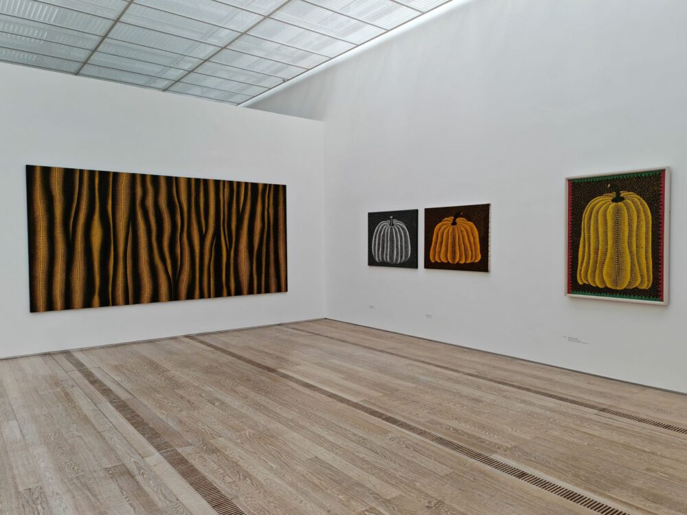 “Il pois ha la forma del sole, che è simbolo dell’energia del mondo intero e della vita, e anche la forma della luna, che è calma… I pois sono una via verso l’infinito”. Il motivo dei pois accompagna Yayoi Kusama fin dall’infanzia, ben prima di diventare la sua cifra stilistica più riconoscibile. In un disegno realizzato all’età di dieci anni, che ritrae la madre, compaiono già quelle forme puntiformi ossessive che in seguito invaderanno tele, sculture e ambienti immersivi. Ed è proprio quel disegno che idealmente apre la grande retrospettiva dedicata a Yayoi Kusama alla Fondation Beyeler, visibile ancora per poco prima di far posto alla mostra di Cézanne di cui vi abbiamo già parlato.