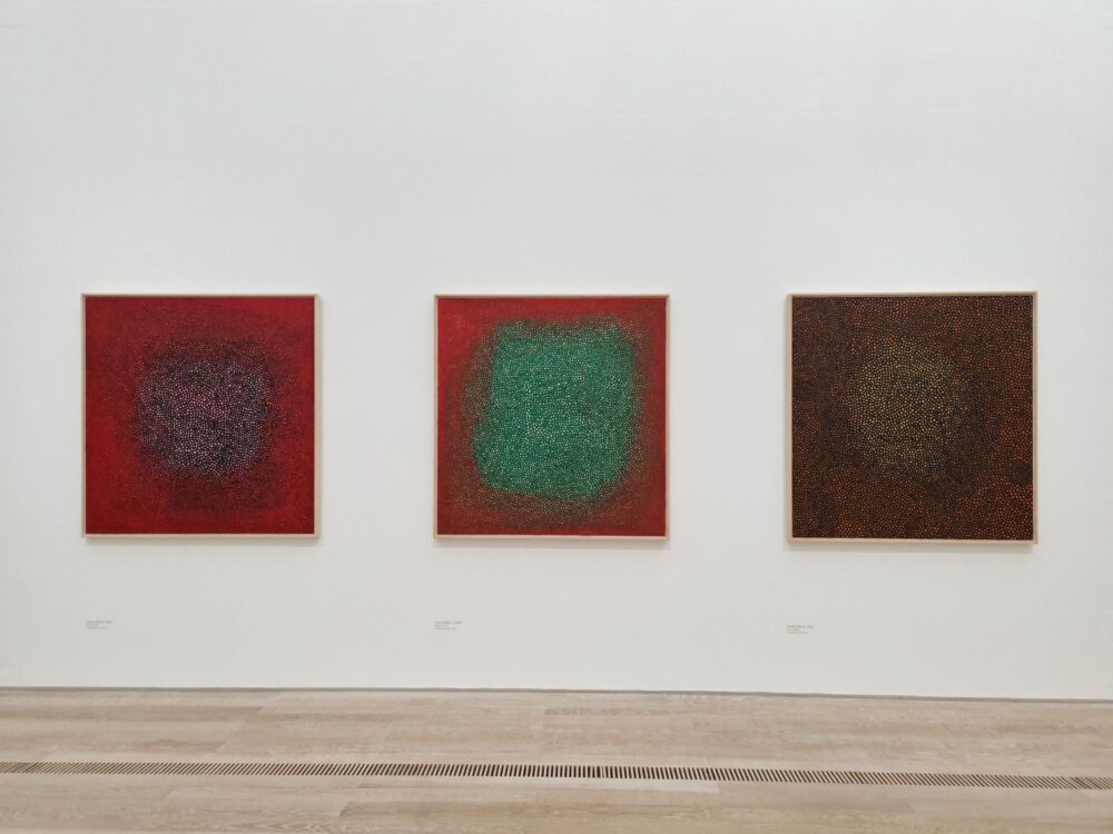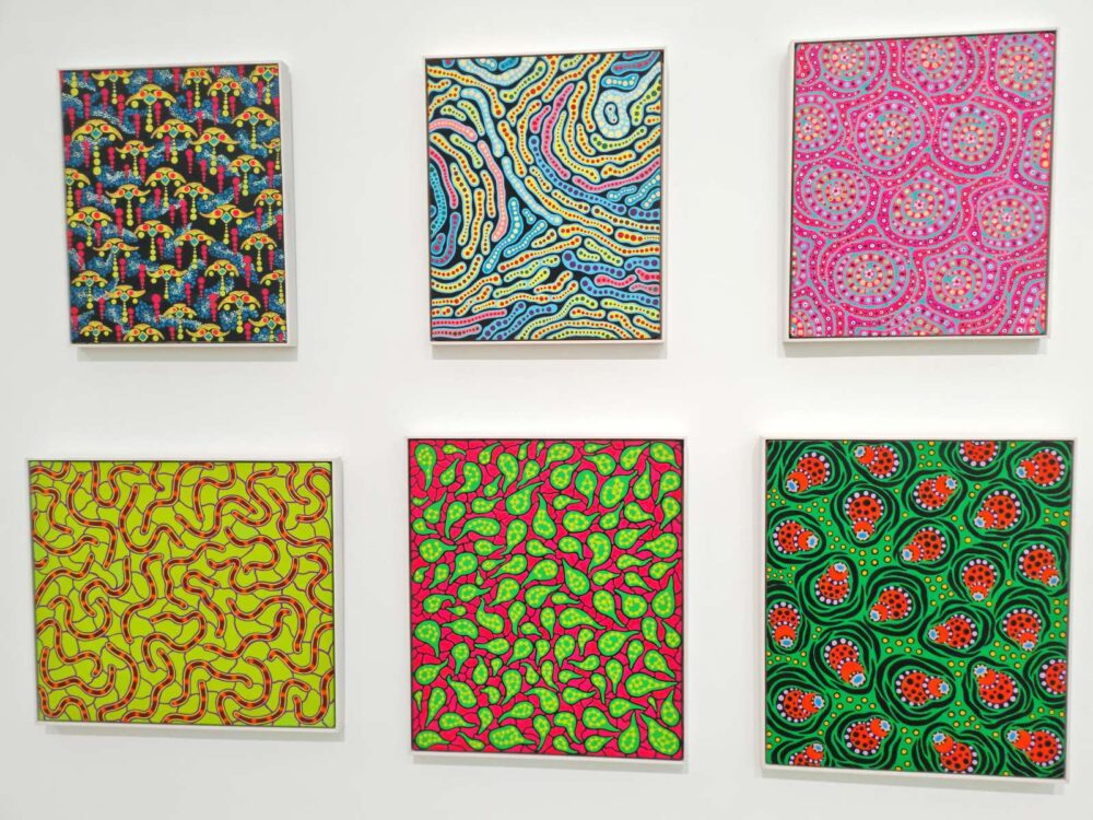 Nel corso della sua carriera, Kusama trasformerà quel segno infantile in un linguaggio radicale. Il pois diventa unità minima e cosmica al tempo stesso: cellula, stella, atomo, elemento ripetuto fino all’annullamento dell’individualità. Attraverso la ripetizione ossessiva, l’artista mette in scena un processo di “auto-obliterazione”, in cui il sé si dissolve nel ritmo infinito del pattern. Guardando a quel disegno dell’infanzia, il rapporto con la madre appare allora come origine simbolica di una poetica che attraversa tutta la sua opera: il tentativo di dare forma, fin dall’inizio, a un’esperienza psichica travolgente, trasformando il trauma in visione e la ripetizione in possibilità di controllo e sopravvivenza.