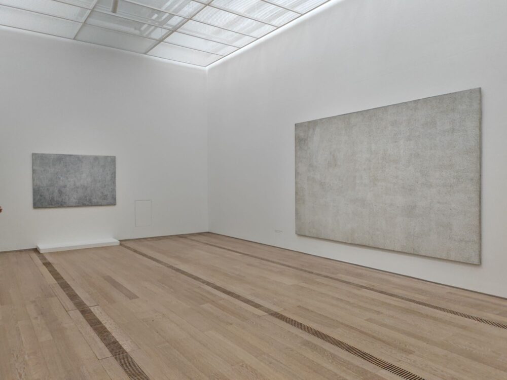 L’allestimento dialoga con intelligenza con l’architettura della Fondation Beyeler e con il paesaggio circostante. Estendendo l’esperienza oltre i confini della sala espositiva. Pittura, scultura e installazione si intrecciano in un racconto fluido che restituisce la natura poliedrica di un’artista da sempre refrattaria a ogni etichetta.