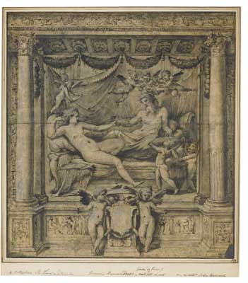 Tra gli altri pezzi forti della vendita del 26 gennaio degli Old Master Drawings c’è un’altra riscoperta di un disegno rinascimentale, opera di uno dei principali allievi e collaboratori di Raffaello: Pietro Buonaccorsi, detto Perino del Vaga (Firenze 1501 – Roma 1547). Giove e Giunone sdraiati in una alcova con amorini è l’elaborato disegno preparatorio per una rinnovata serie di tapezzerie, nota con il nome di Furti di Giove , che fu commissionata daAndrea Doria , nobiluomo legato all’imperatore Carlo V, per il suo palazzo a Genova. L’opera è realizzata a penna con ombreggiature di inchiostro marrone e acquerello marrone e grigio per intensificare e bianco ora ossidato, il tutto inquadrato con uno stilo, per 43, 5 x 40,4 cm di grandezza, stima 600,000 – 800,000 dollari.
