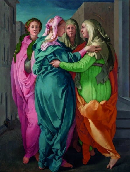 L’intensità cromatica dei panneggi rigonfi è brillante e potente, grazie al recente restauro, l’atmosfera straniante e metafisica del dipinto, a cui contribuisce la sproporzione delle architetture sullo sfondo, lascia nel mistero lo sdoppiamento dei personaggi: le due figure femminili in secondo piano sembrano due alter ego delle protagoniste in primo piano, Maria ed Elisabetta. Nel 1530 i Medici tornano a Firenze, Pontormo continuerà a lavorare per loro, sia in città che nelle ville dei dintorni, mentre il Rosso non vi farà più ritorno. Esposti anche due arazzi, uno su disegno del Pontormo per Palazzo Vecchio e l’altro tratto dalla decorazione del Rosso della Galleria di Fontainebleau. Degne di interesse le numerose attività collaterali in programma, le aperture straordinarie di siti e il ‘passaporto’ con l’indicazione di itinerari toscani attraverso cui è possibile completare la conoscenza dei due artisti.
